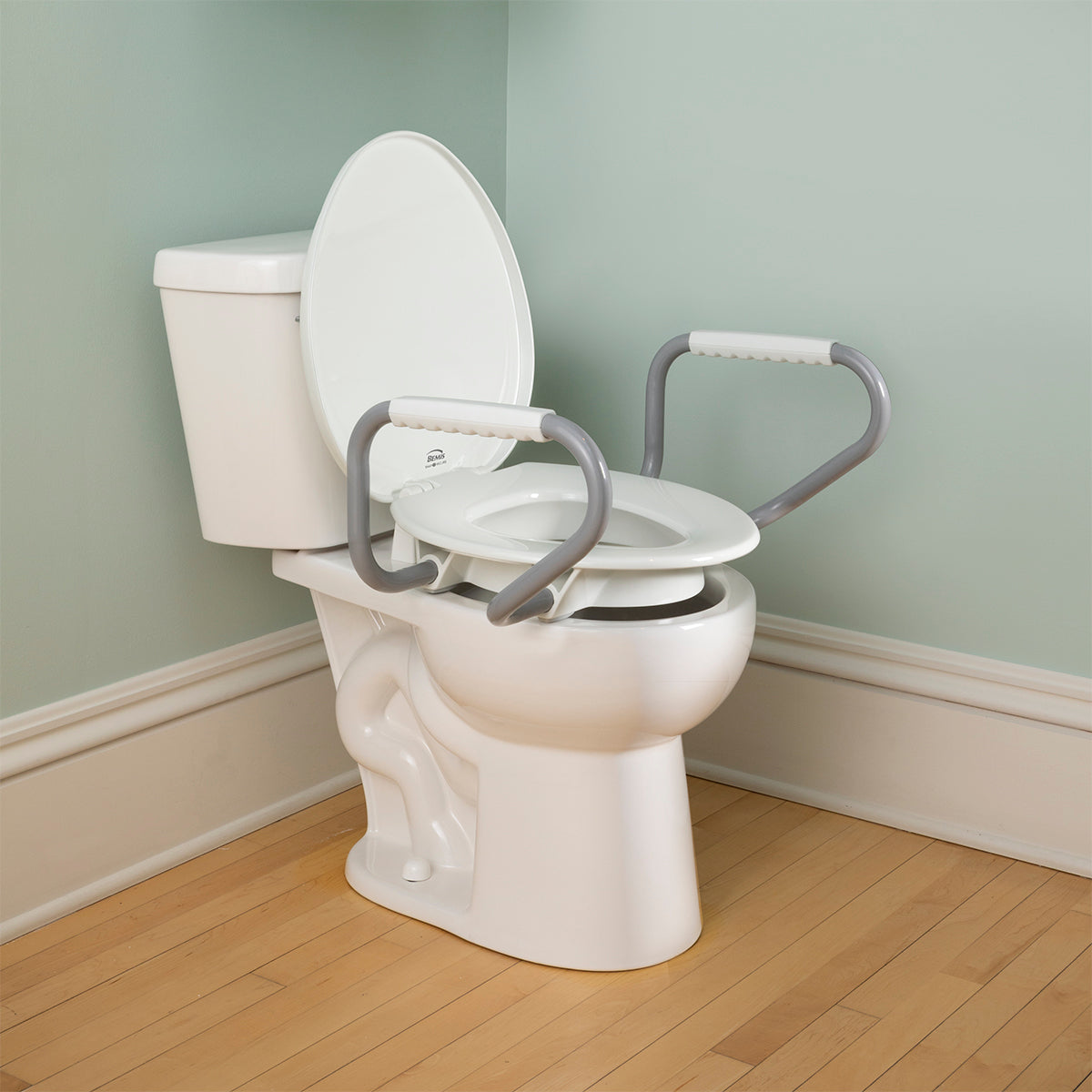- Arm width allows the seat ring to be raised in the upright position for easy cleaning and standing use of the toilet