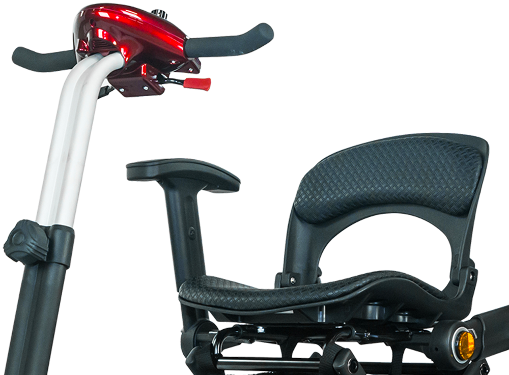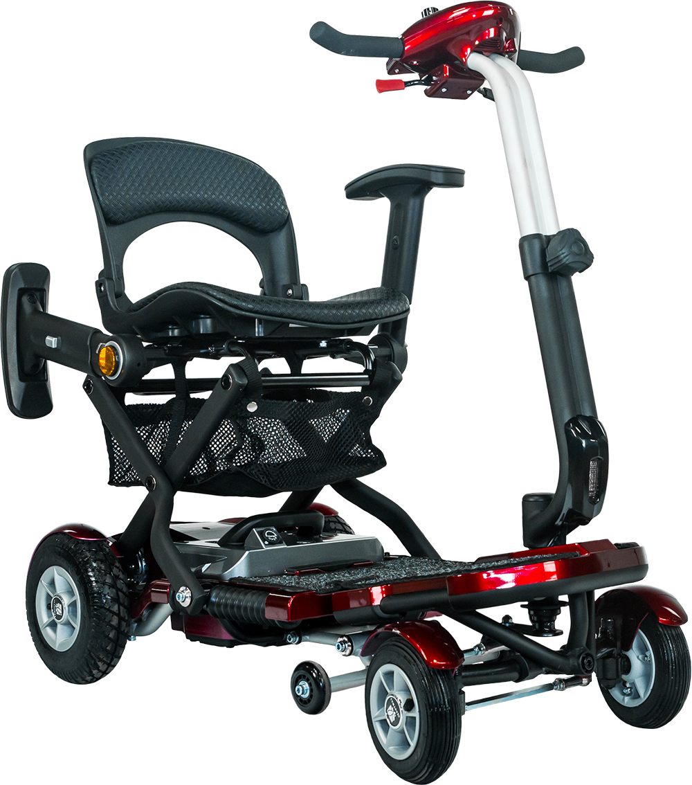 We never comprise the comfort even on a foldable light weight model. Now equipped with foldable armrest, air tires, led lights, and 4 wheels for enhnaced stability. This scooter is good for indoor and outdoor use.