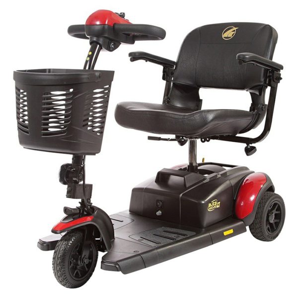 The all-new Buzzaround LT scooter is the smallest, lightest, and most portable Buzzaround scooter to get you were you want to go in comfort and style! Offered in both 3-wheel and 4-wheel models, this sporty design features a lightweight, stadium style seat, a weight capacity of 300 lbs., and increased foot room. The new Buzz LT also has a charger port in the tiller, a new hard plastic rugged basket, and color through shrouds. Enjoy its tight indoor maneuverability and smooth outdoor ride with 2.5″ of ground clearance!