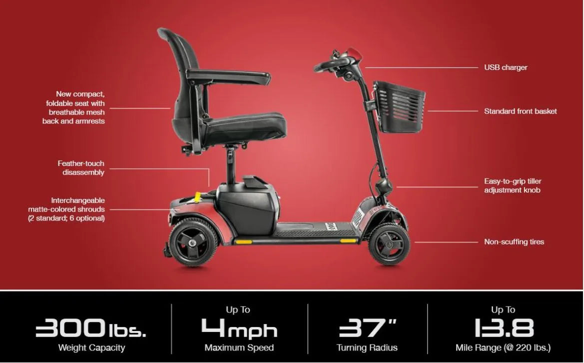 - Patented iTurn Technology offers tightest 4-wheel scooter turning radius (37”)