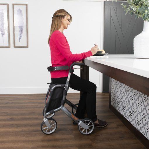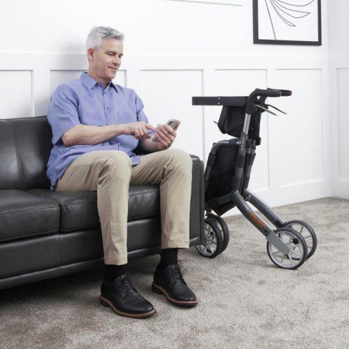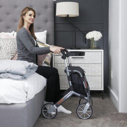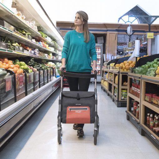 The Stander Let’s Shop Rollator by Trust Care is an innovative and sleek mobility aid that gives users independence, balance, and support while on the go. Weighing only 15 pounds, easily navigate narrow store aisles or busy sidewalks with the compact frame and 8-inch swivel wheels. The smart lid seat and full back strap provide a convenient place to rest and the rear locking brake system is built into the ergonomically shaped handles; when not in use activate the parking brake to keep the rollator close by. Conveniently transport items and keep personal belongings close by with the included waterproof storage bag. When folded, the rollator can easily fit in a car for transport or be stored standing up in a closet. Maintain your independence with this versatile walker rollator.