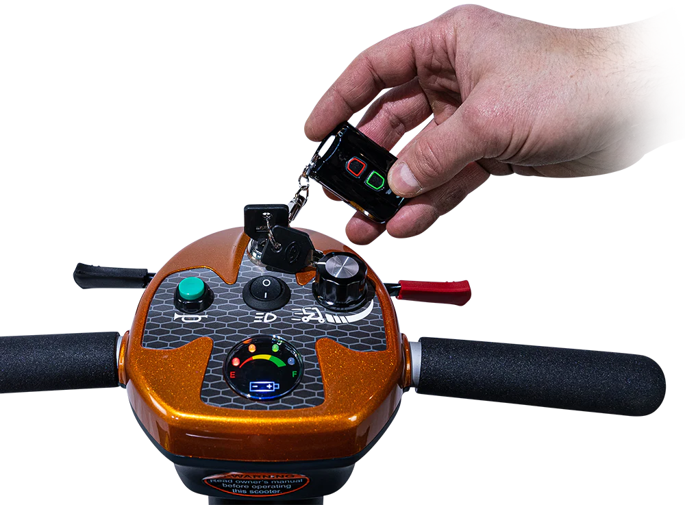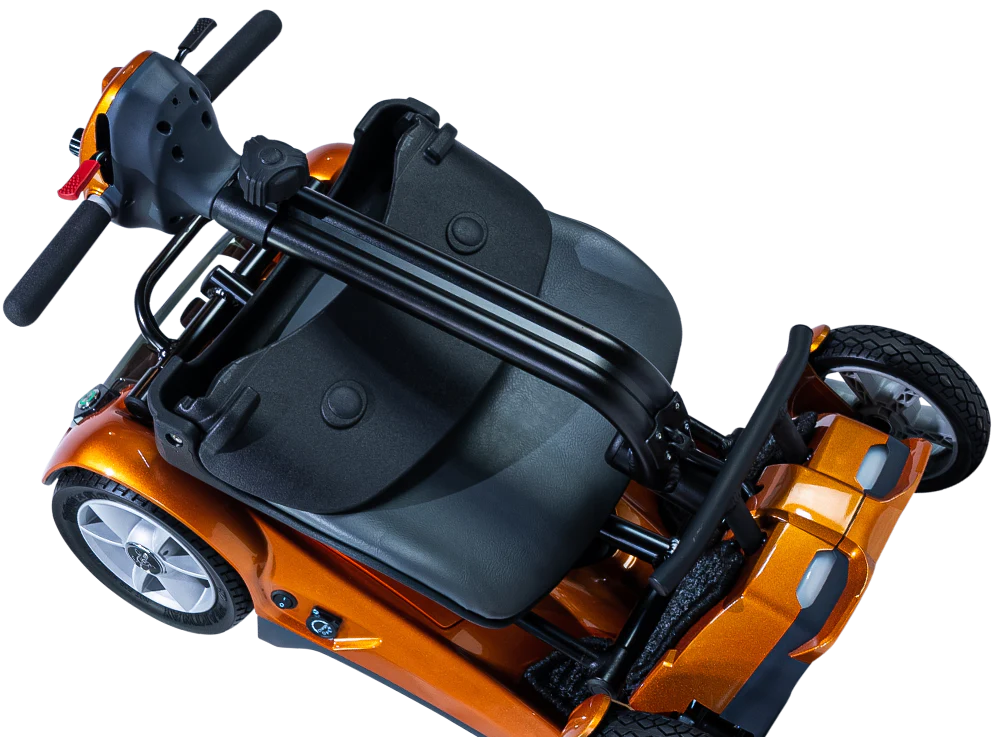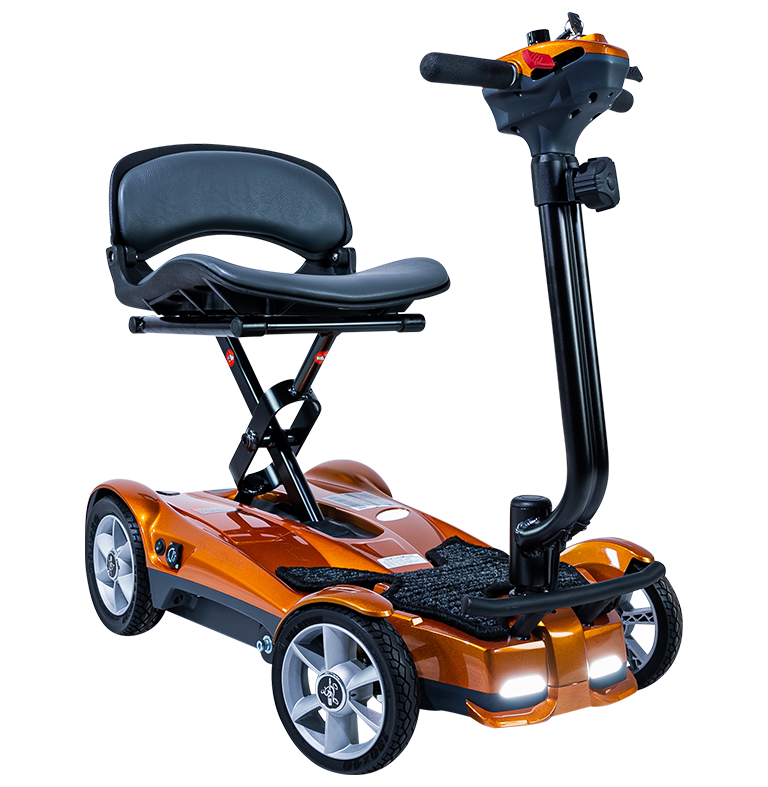 A scooter that electrically folds and unfolds with a remote or with the click of a button.