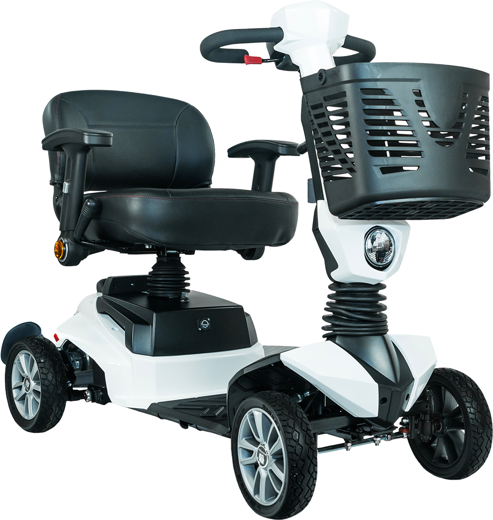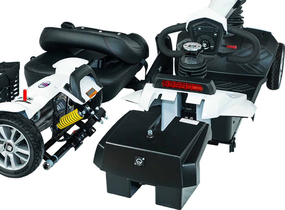 The Heartway Zen Plus is a lightweight, compact mobility scooter. It features easy to use controls, a comfortable padded rotating seat, rear suspension, and large wheels for easy driving. The Heartway Zen Plus is the perfect pull-apart mobility scooter for those wanting a simple compact scooter without folding capabilities.